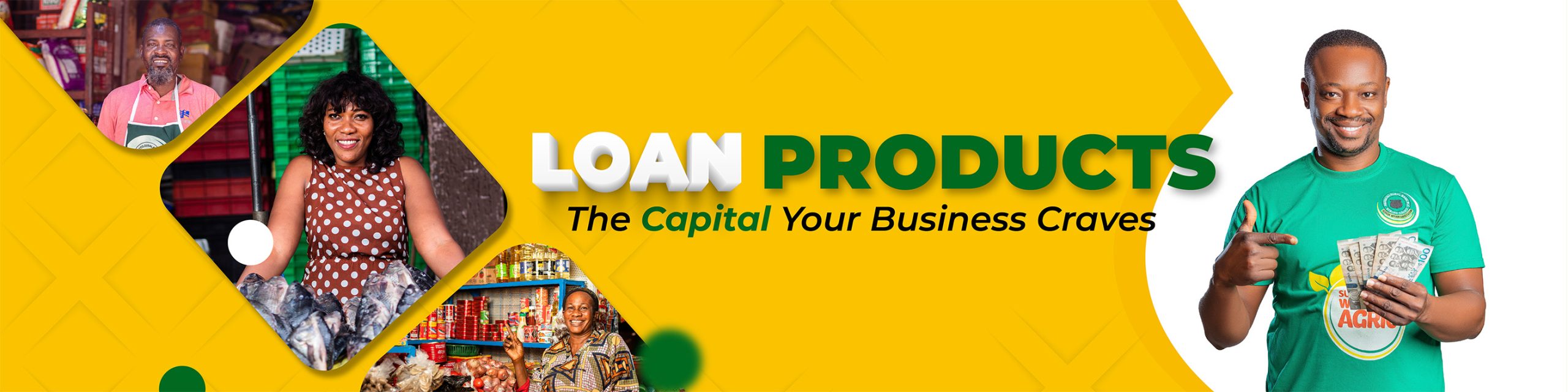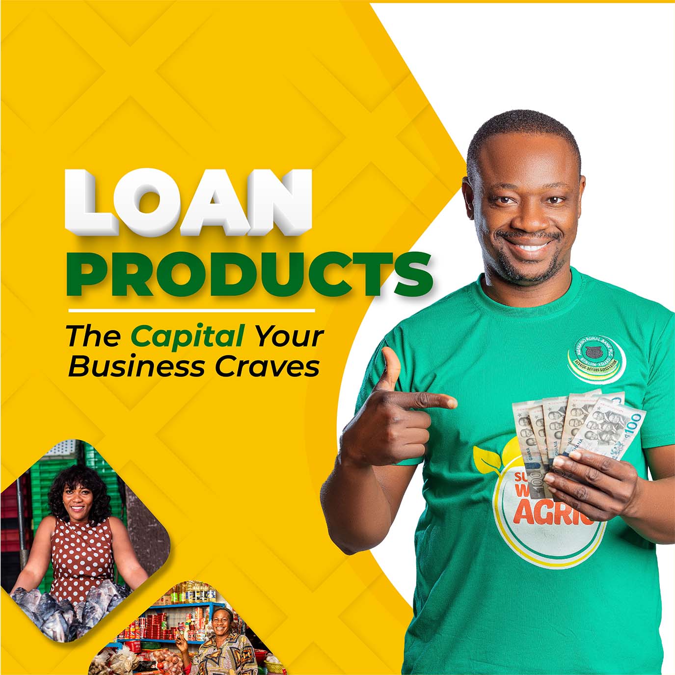 Susu Loans are granted to susu customers for the running of the petty trading activities.